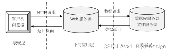 B/S模型由一个浏览器、一个网络服务器、一个数据库服务器三个层级构成。数据管理采用了当前大部分现有B/S系统的表现层、应用层和数据层,Web浏览器是为了满足用户的要求而设计的,在数据处理和逻辑过程中使用的中间应用层,从而形成分布式的运行模式。B/S体系结构的逻辑是:在前端完成的处理,将主要的业务逻辑交给后台,而前端只负责少量的请求、渲染等。由于因特网技术的迅速发展,B/S体系结构使得任何时间、任何地点都能访问到该系统。