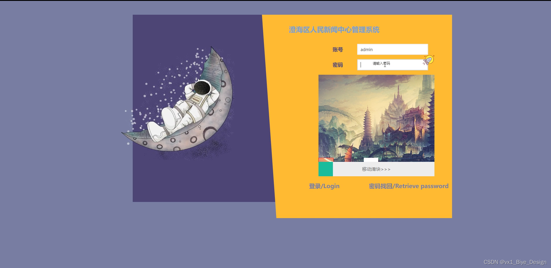 管理员登录,通过填写账号、密码、完成行为验证后登录即可进入人民新闻中心管理系统,如图5-1所示。