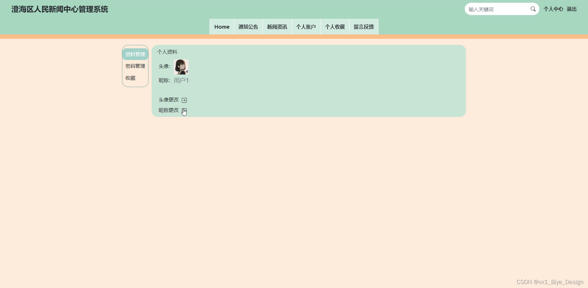 登录进入个人中心可以对个人资料和密码进行修改操作,如图5-12所示。