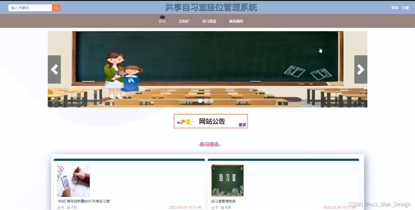 This design mainly implements a shared study room seat management system that integrates the advantages of humanization, efficiency, and convenience, and completes functional modules such as seat classification, seat reservation, reservation management, check-in, departure record, payment reminder, and blacklist. The system communicates with the server through a browser to achieve data interaction and change. You can operate the system by moving your fingers through a computer to achieve data communication management. The entire system design process fully considers the issues of data security, stability, and reliability, and the operation process is simple. This system improves work efficiency and reduces errors and omissions in data storage through scientific management methods and convenient services.