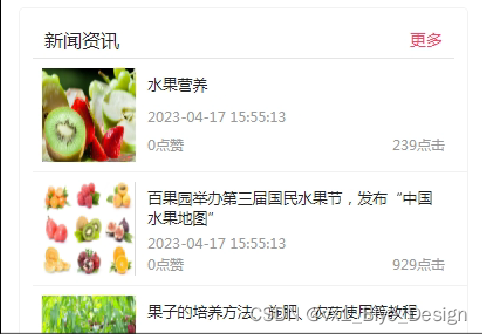 社区团购中的管理人员是可以对社区团购内的资讯信息进行维护和管理的。新闻资讯列表界面如下图4-11所示。