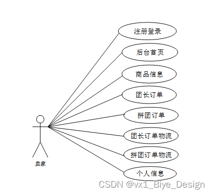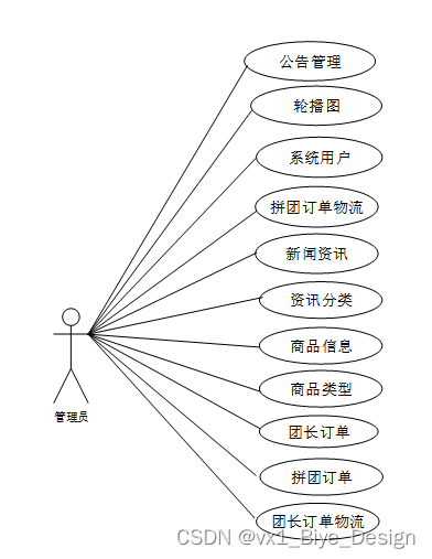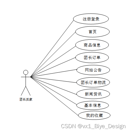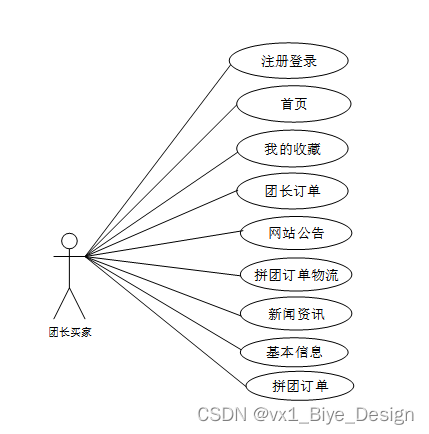 通过2.3功能的分析,得出了本社区团购APP的用例图: