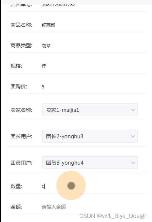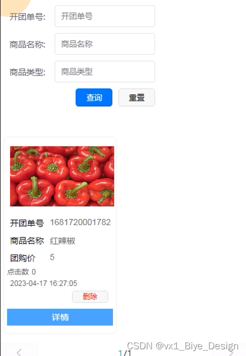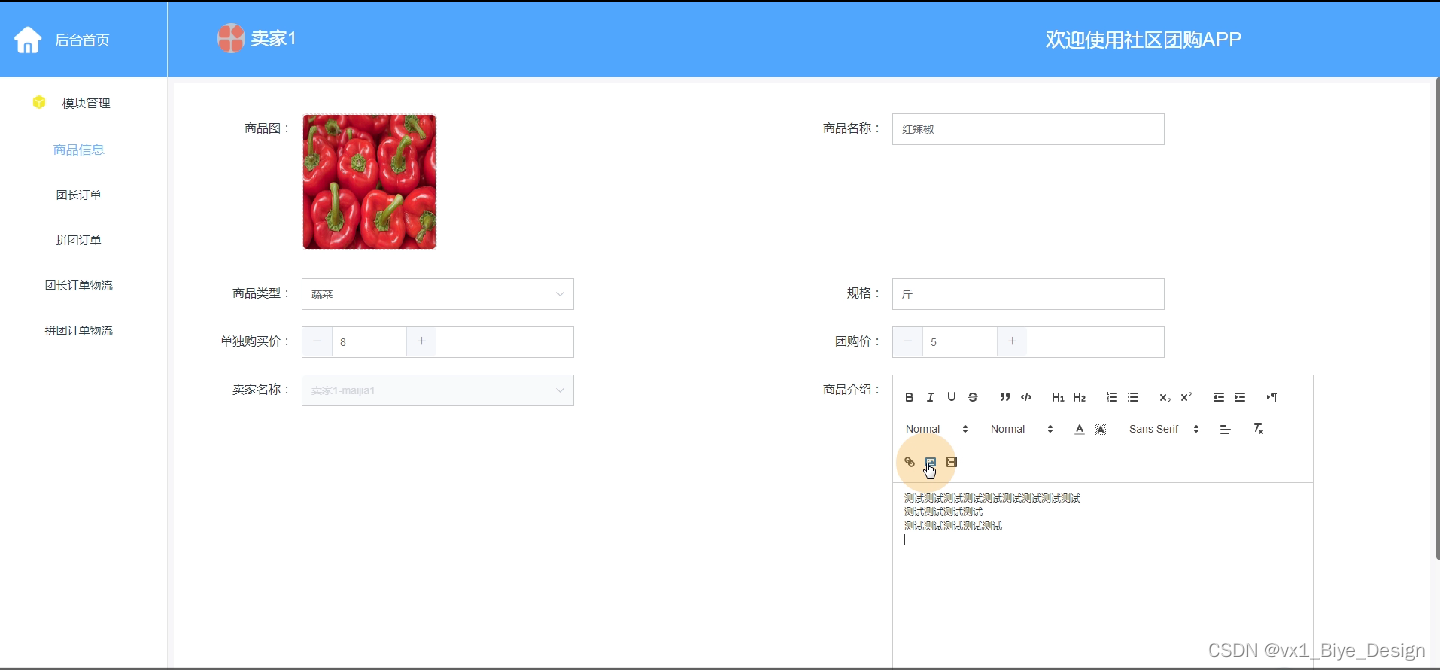 (2)商品信息管理:管理员可以对社区团购中现有的商品进行增删改查。
