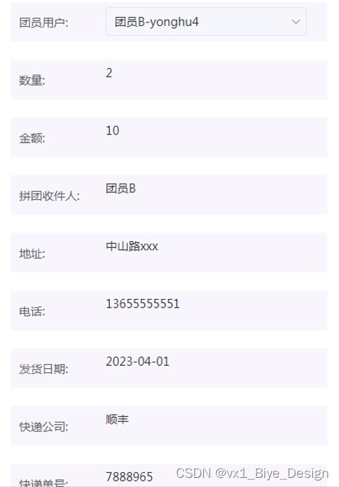 当团员的商品拼团成功后,由商家安排发货,团员可在此页面查看物流情况,界面如下图4-15所示。