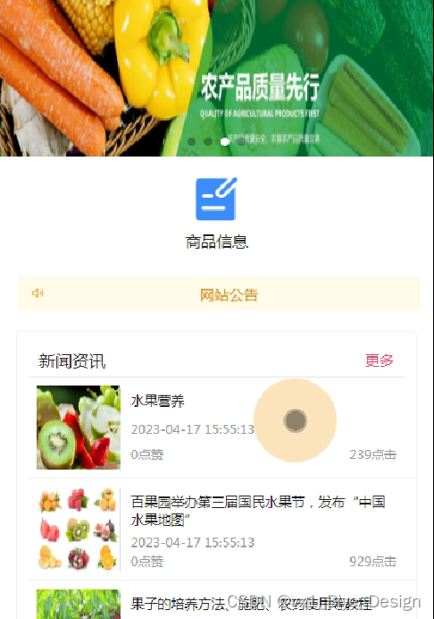 (3)新闻资讯:用户进行资讯的阅览,查看管理者发布的新闻资讯信息。