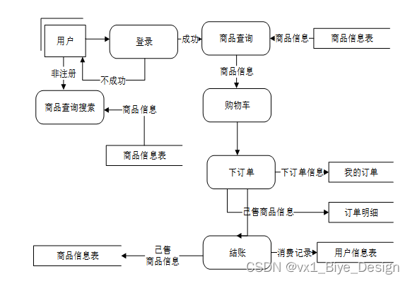 (2)用户查看商品:用户进行商品信息的阅览,通过发现喜欢的商品后可以购买+评论+收藏。