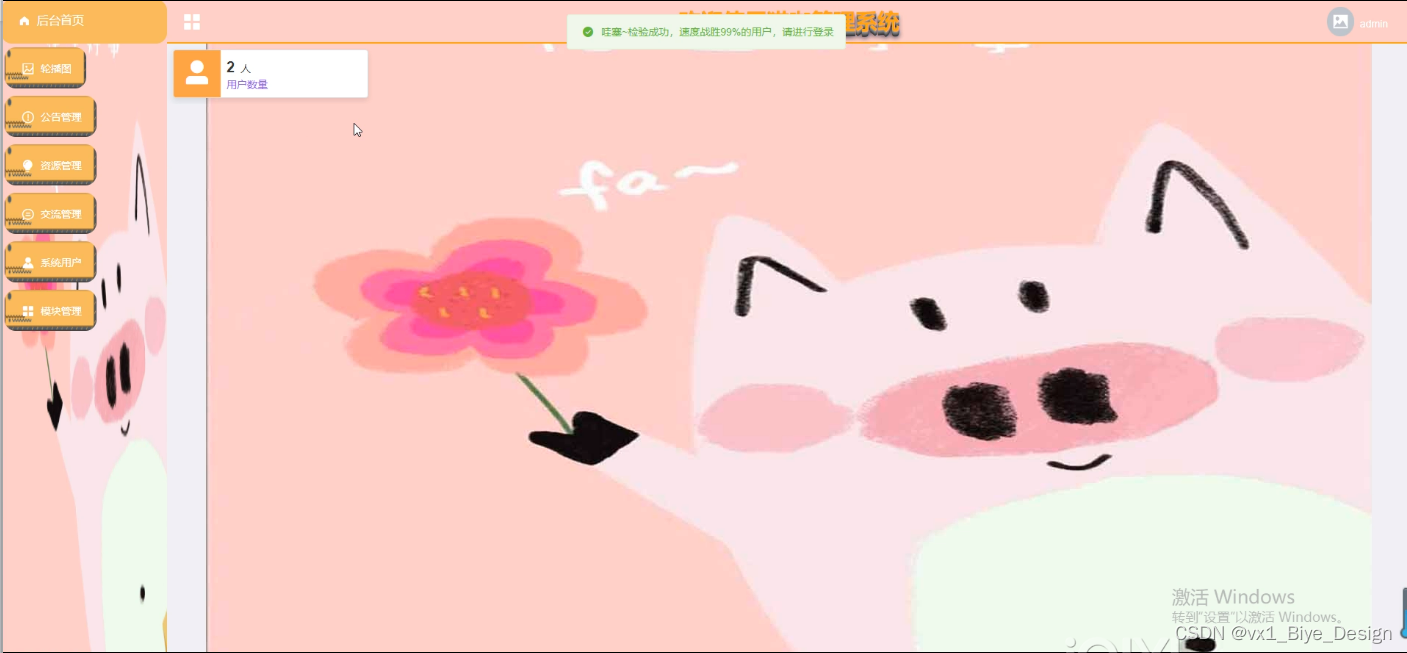 可操作性主要是对猫咖管理设计完成后,顾客的使用体验度,以及管理员可以通过平台随时管理相关的数据信息,并且对于管理员、顾客两个顾客角色,都可以简单明了的进入到自己的平台界面,通过界面导航菜单可以简单明了地操作功能模块,方便顾客信息的操作需求和管理员管理数据信息,对于平台的操作,不需要专业人员都可以直接进行功能模块的操作管理,所以在平台的可操作性是完全可以的。本平台的操作使用的也是界面窗口进行登录,所以操作人员只要会简单的电脑操作就完全可以的。