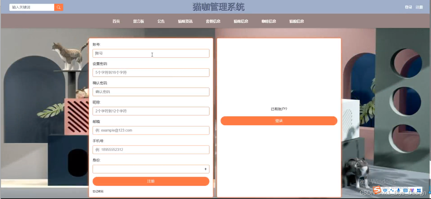 关键词:猫咖管理; SSM框架;Mysql 数据库;