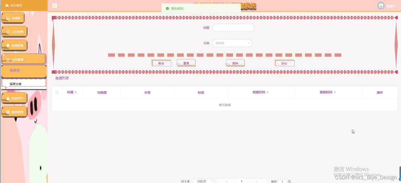 | 删除分类模块 | 分类名:最新通知 | 删除成功、页面自动跳转 | 删除成功、页面自动跳转 | 通过 |