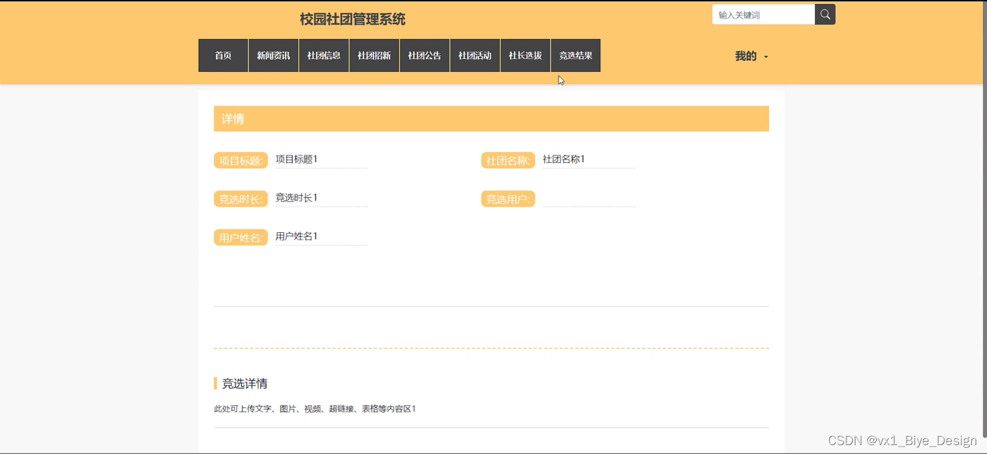 学生用户可以实现前台首页、新闻资讯、社团信息、社团招新、社团公告、社团活动、社长选拔、竞选结果,后台首页:报名信息、社员管理、社员留言、活动报名、证书信息、竞选社长、投票信息等功能模块。