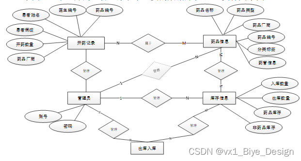 下面是整个医疗药品管理系统中主要的数据库表总E-R实体关系图。