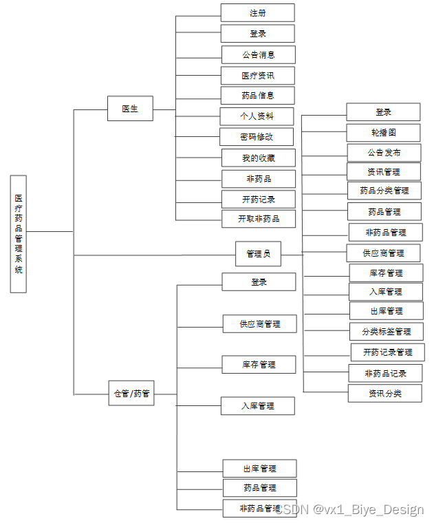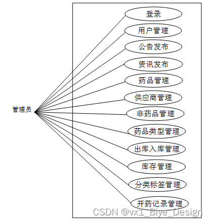 (1)药品管理;药管员对药品信息进行添加管理等;