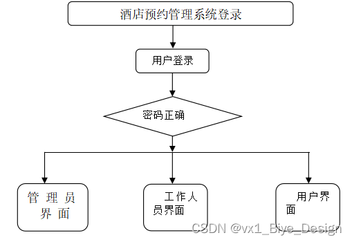 管理员登录,通过填写用户名、密码、权限、验证码等信息,输入完成后选择登录即可进入酒店预约管理系统,如图5-1所示。