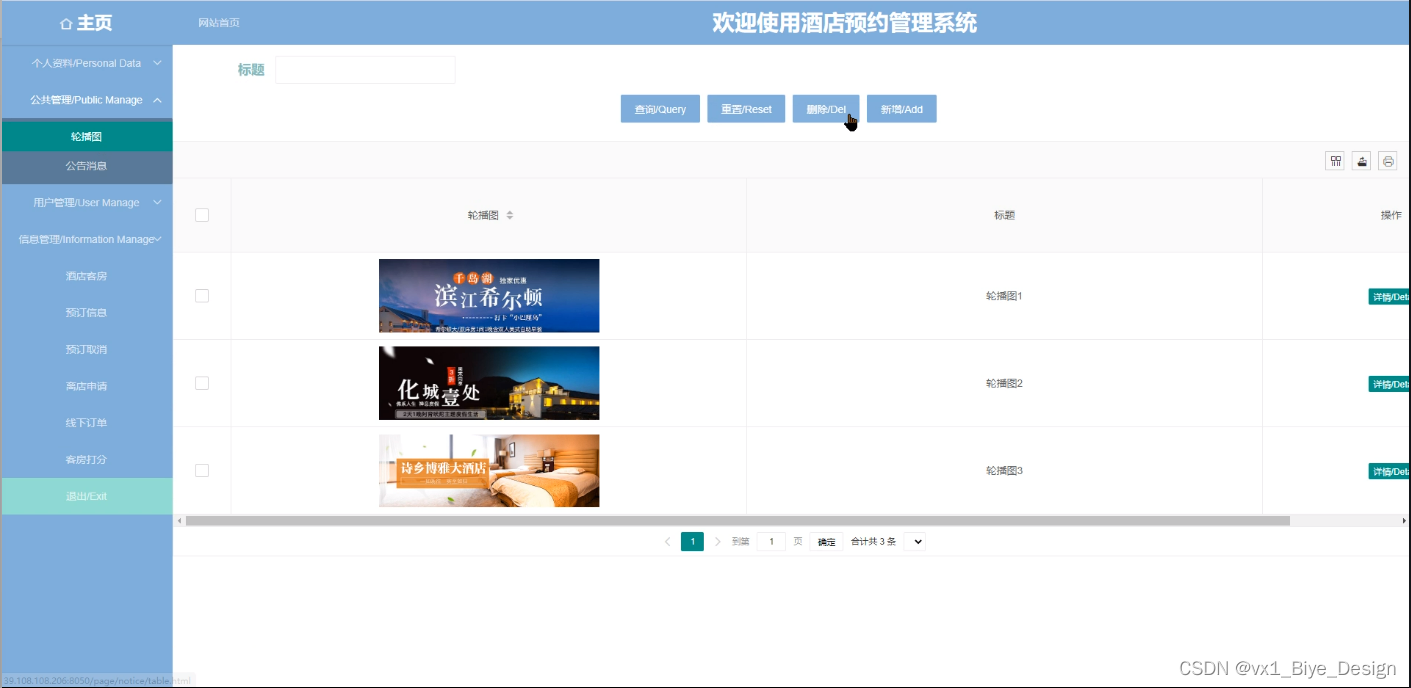 Key words: Hotel reservation management system, Thinkphp framework, MySQL database