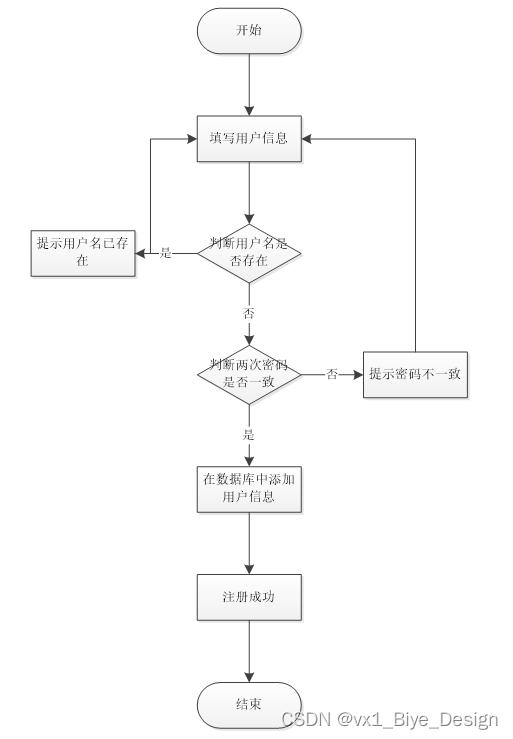 | 填写已存在的用户名 | 系统显示出提示信息,要求重新填写 | 一致 | |