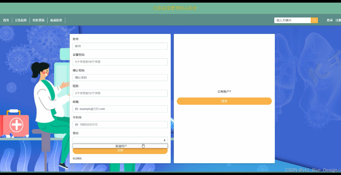 关键词:社区疫苗管理网站系统;springboot;Mysql