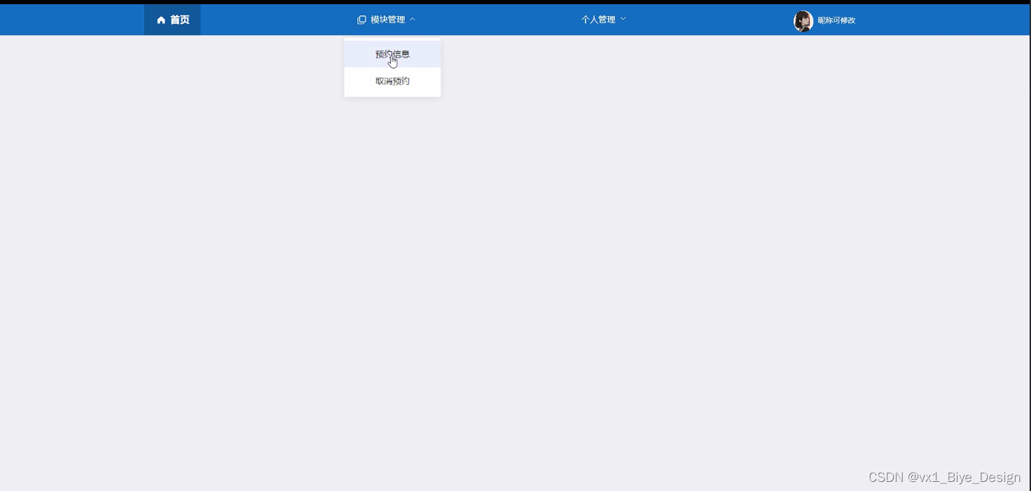 用户登录进入后台可以查看首页、预约信息、取消预约、个人管理等内容,如图5-9所示。