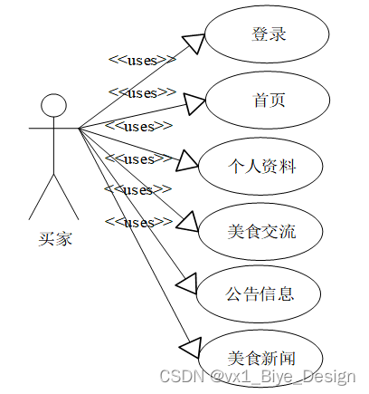 买家模块:个人资料管理、美食交流、公告信息、美食新闻、菜品信息、菜品订单、订单评价等。