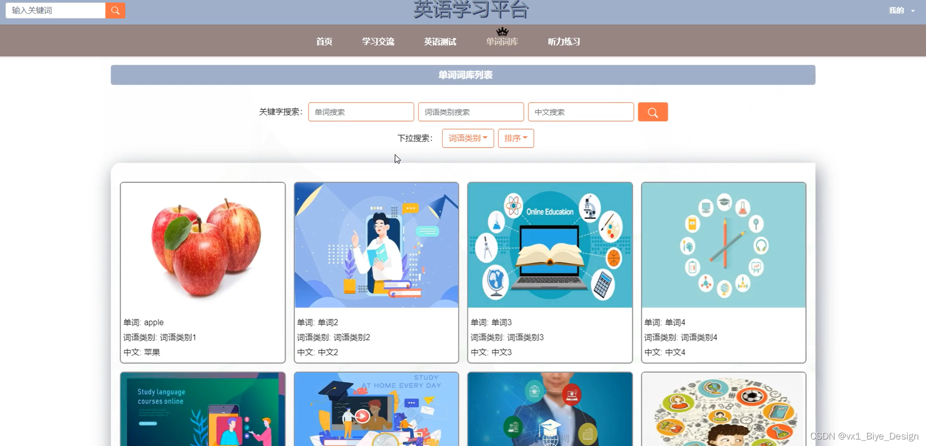 关键字:英语学习平台,springboot,Mysql Springboot English Learning Platform