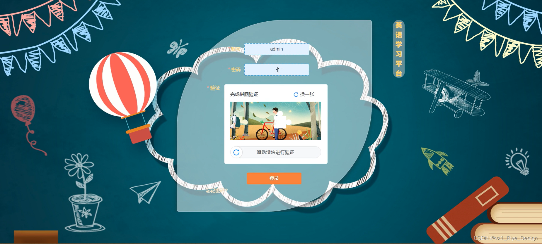 管理员登录,管理员通过输入账号,密码,图片验证等信息进入英语学习平台,如图5-6所示。