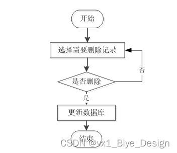 用户可选择要删除的信息进行信息删除操作,在删除信息时系统提示是否确定删除信息,是则删除信息成功,系统数据库将信息进行删除。删除信息流程图如图2-4所示。
