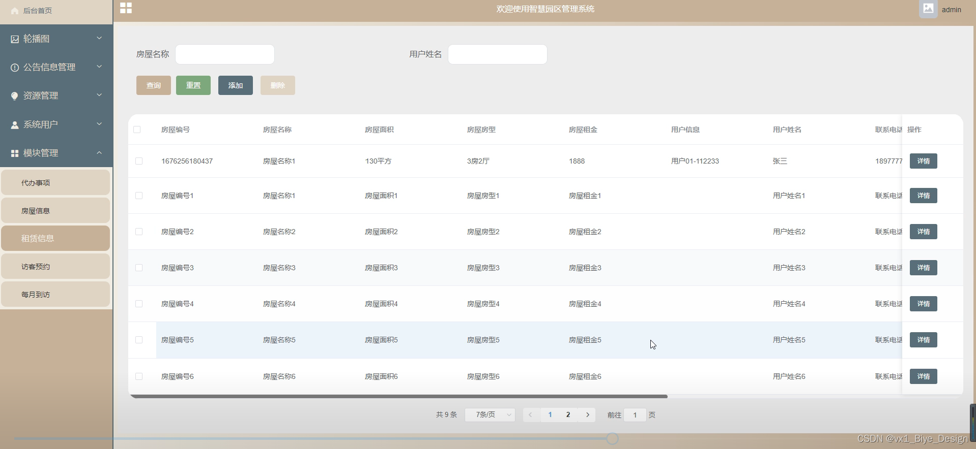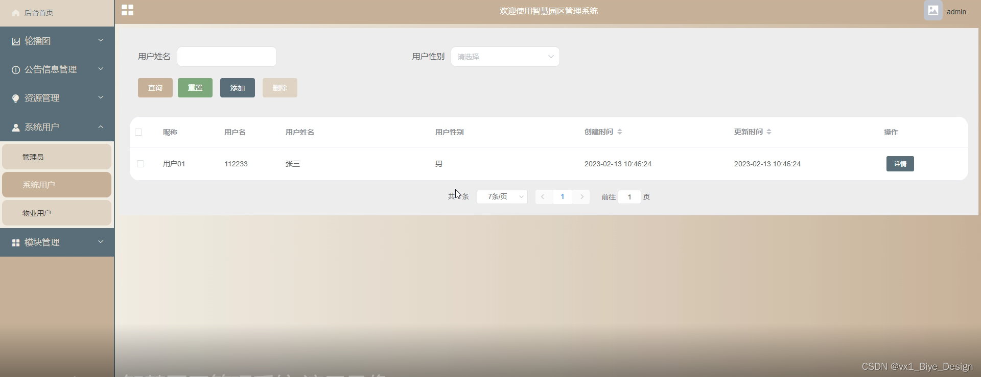 6.管理员功能,管理员可以对用户或者园区信息进行管理。