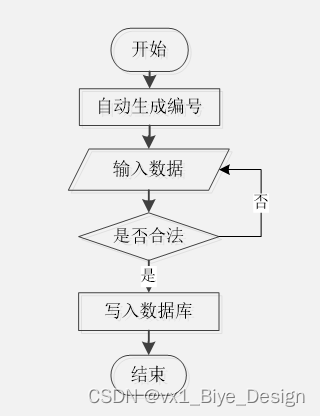 对于微信小程序的鲜花商城,需要随时添加所需要的数据信息,对于用户添加信息,需要根据添加界面,根据选框的内容进行填写所要添加的数据信息,信息输入完成后判断数据信息是否符合要求,符合要求则添加完成,用户所添加的信息不符合要求,则需要返回到第一步,重新输入数据信息,再进行判断操作,如图3-2所示。