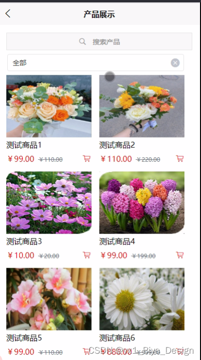 产品展示页面可以查看展示的鲜花详情等信息,并可通过关键词搜索鲜花,并对鲜花进行购买等操作。如图5-4所示。