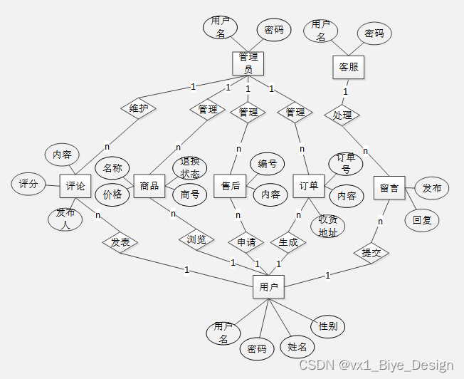 概念模型的设计是为了抽象真实世界的信息,并对信息世界进行建模。它是数据库设计的强大工具。数据库概念模型设计可以通过E-R图描述现实世界的概念模型。系统的E-R图显示了系统中实体之间的链接。而且Mysql数据库是自我保护能力比较强的数据库,下图主要是对数据库实体的E-R图: