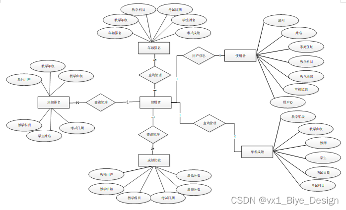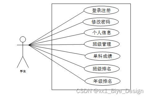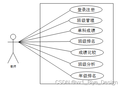 通过2.3功能的分析,得出了本中学成绩管理系统的用例图: