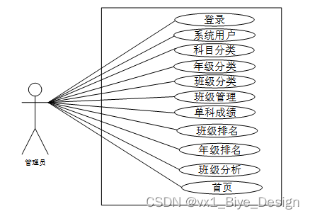 web后台管理上的管理员是维护整个中学成绩管理系统中所有数据信息的。管理员角色用例如图2-5所示。