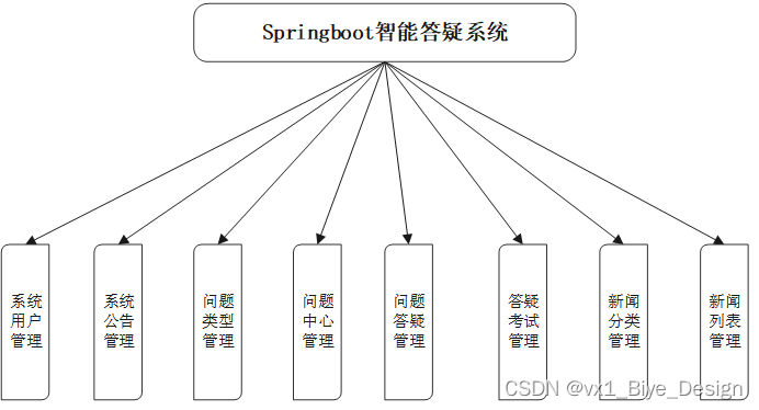 按照智能答疑系统的角色,我划分为了出题用户、答题用户和管理员模块这三大部分。