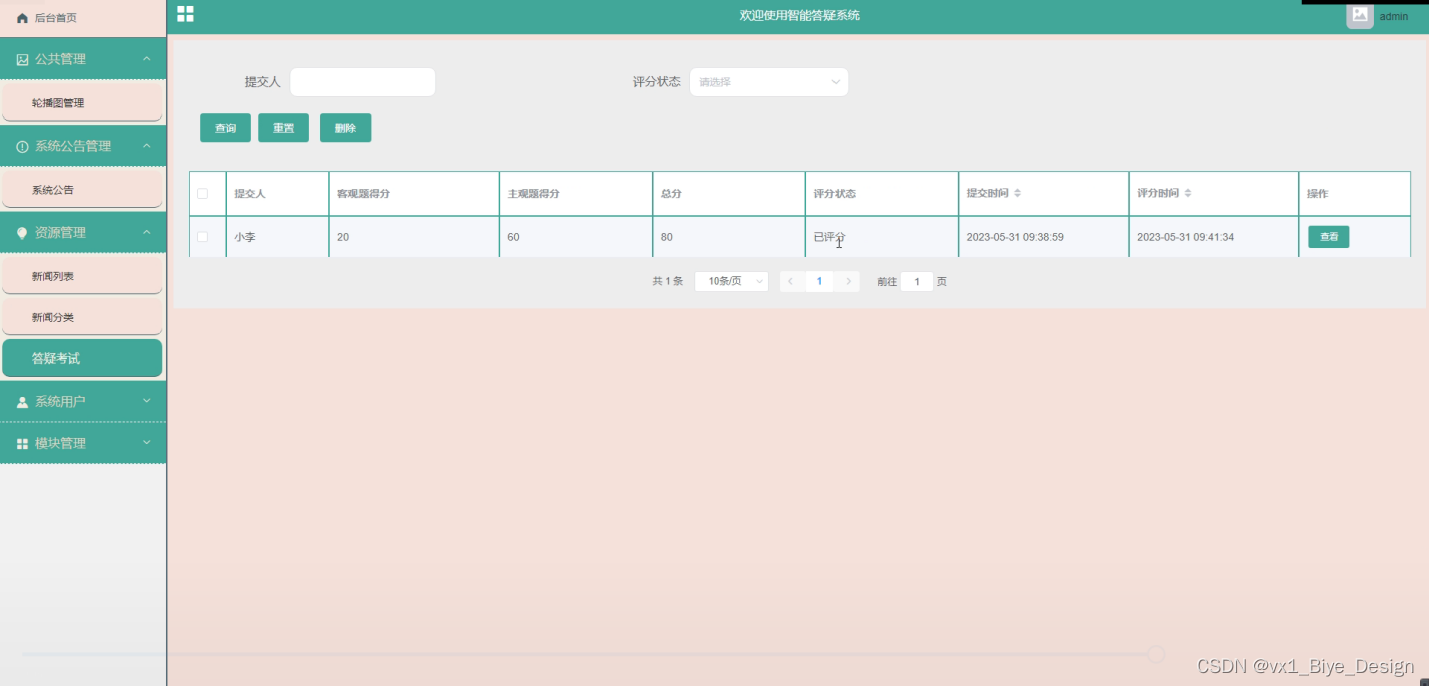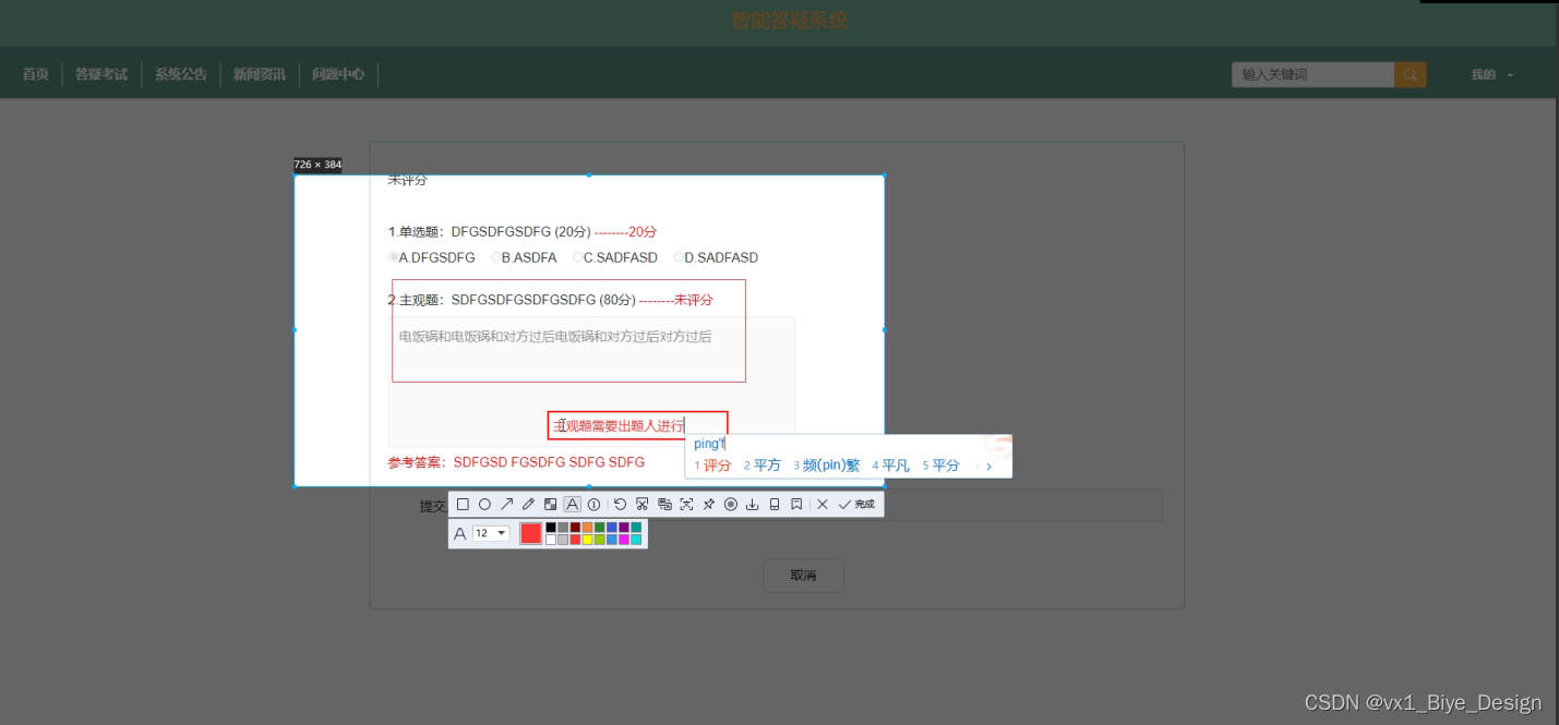 (2)答疑考试:出题用户点击导航栏中的“答疑考试”进行考试的审核评分等。
