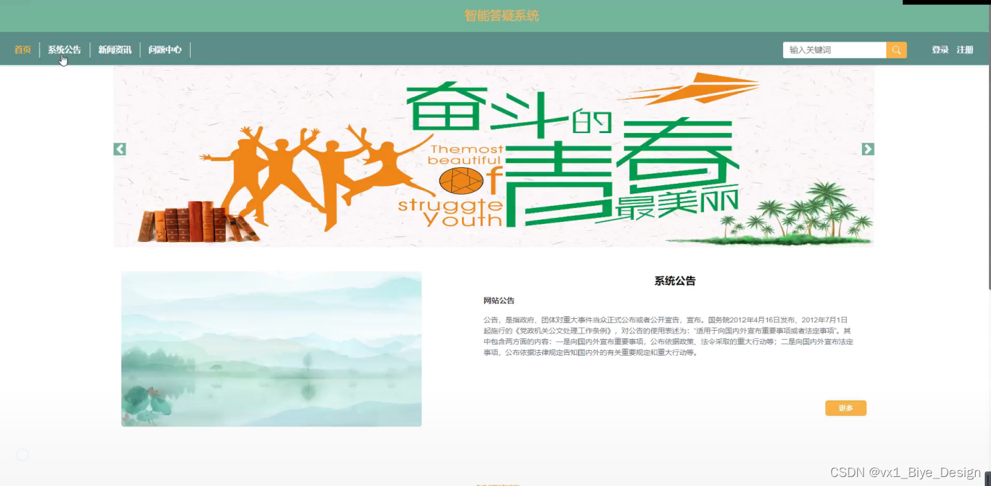 (2)系统公告:答题用户点击导航栏中的“系统公告”进行公告信息的浏览查看等。