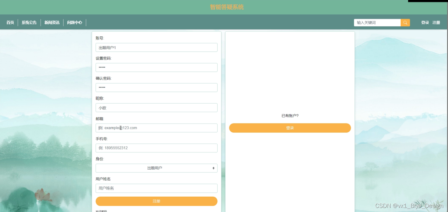 (1)注册登录:游客可以随时进入到系统中,对系统中的信息浏览,但是想要实现问题中心查看以及答疑考试等,就必须有这个系统的账号,如果没有账号的话,可以注册成员用户进行相关的操作,同时用户还可以通过“我的”这以按钮对个人信息以及操作的信息进行管控。
