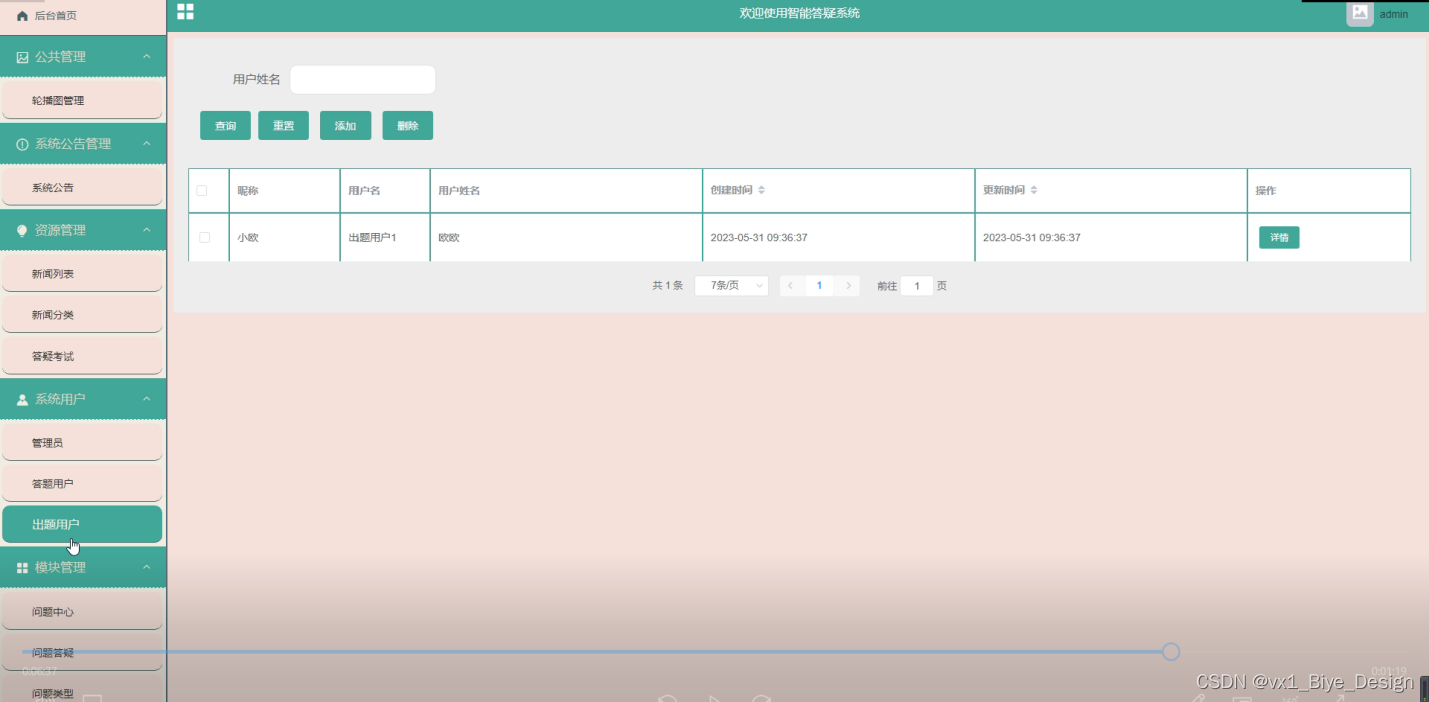 (3)问题中心:出题用户点击“问题中心”可以对问题进行增删改查操作。