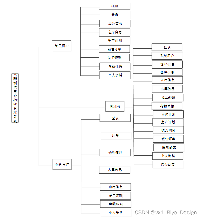 在上一章节中主要对系统的功能性需求和非功能性需求进行分析,并且根据需求分析了本马瑞利汽车企业ERP管理系统中的用例。那么接下来就要开始对本马瑞利汽车企业ERP管理系统 的架构、主要功能和数据库开始进行设计。马瑞利汽车企业ERP管理系统根据前面章节的需求分析得出,其总体设计模块图如图3-2所示。
