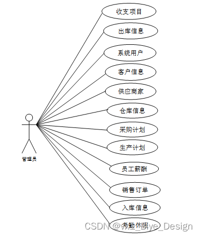 web后台管理上的管理员是维护整个马瑞利汽车企业ERP管理系统中所有数据信息的。管理员角色用例如图2-4所示。