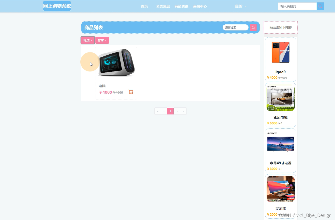 商品展示页面,如下图所示。