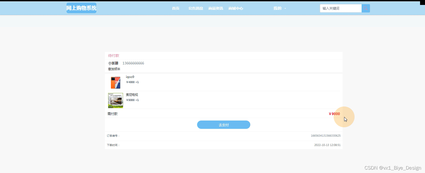 订单(订单编号、用户名、订单内容、总金额、手机号、收货地址、是否支付、当前状态)。