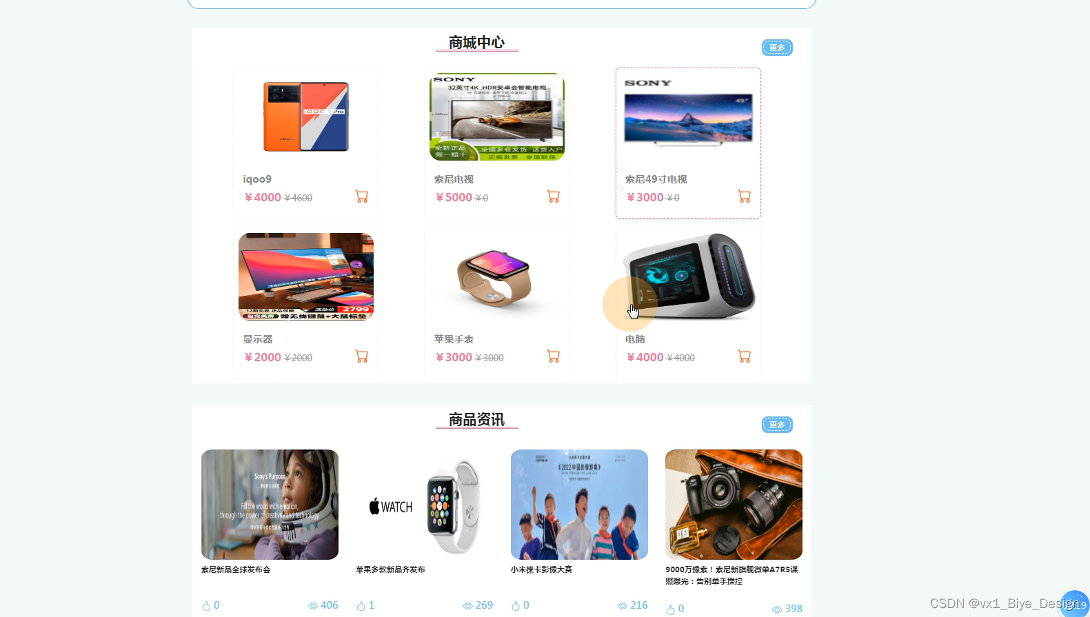 商品展示页是展示系统商品的页面,通过sql语句:"select shangpinxinximingcheng,id,tupian,jiage,addtime from shangpinxinxi order by addtime desc",将所有是商品按商品编号降序排列。