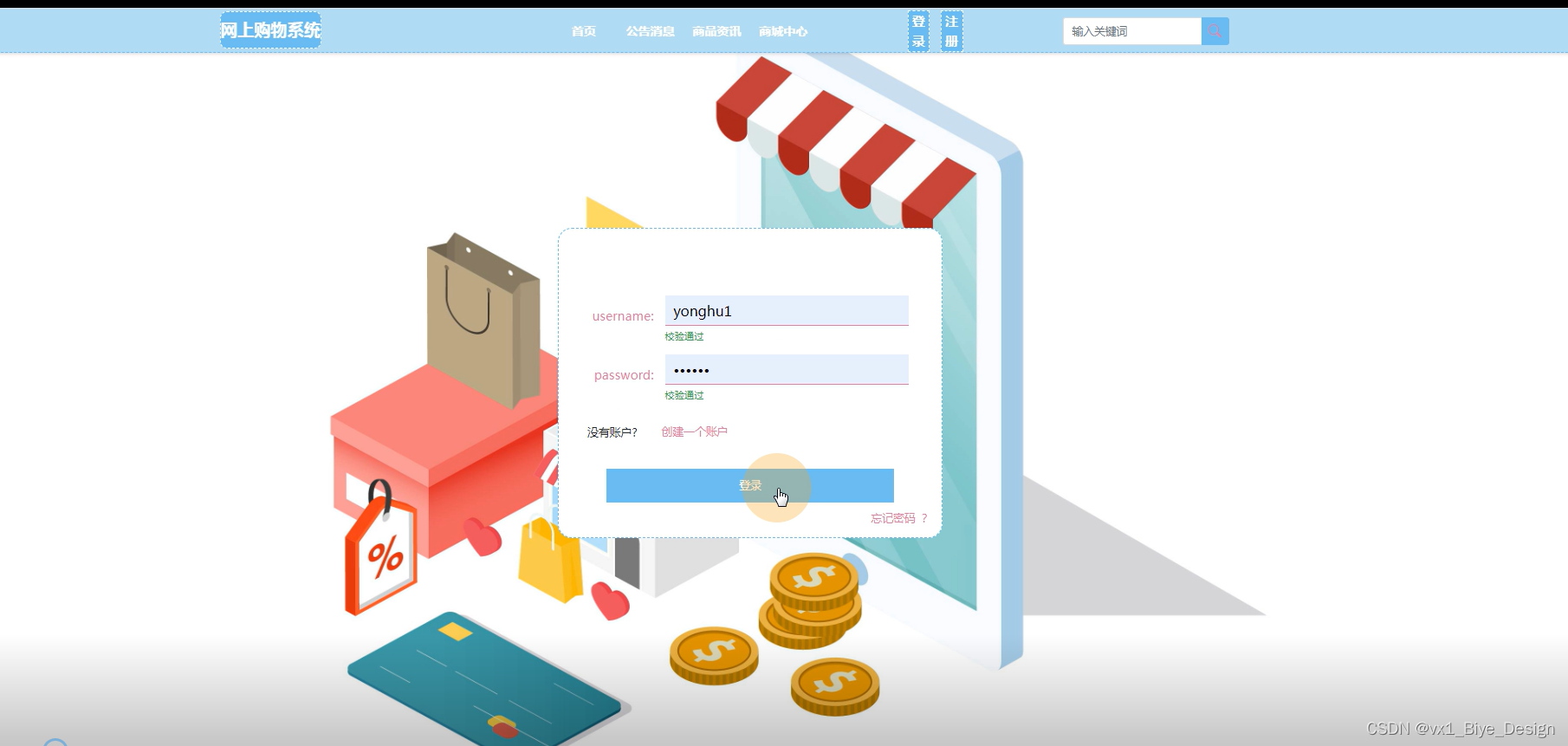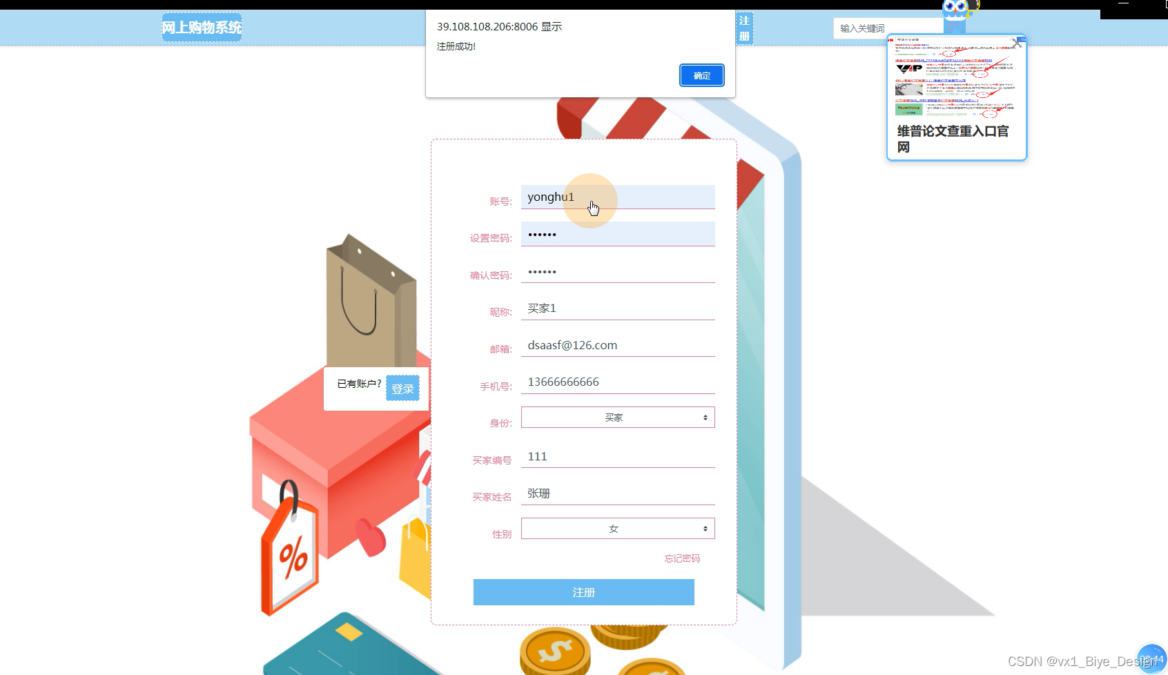 (1)打开浏览器,进入网上购物系统。