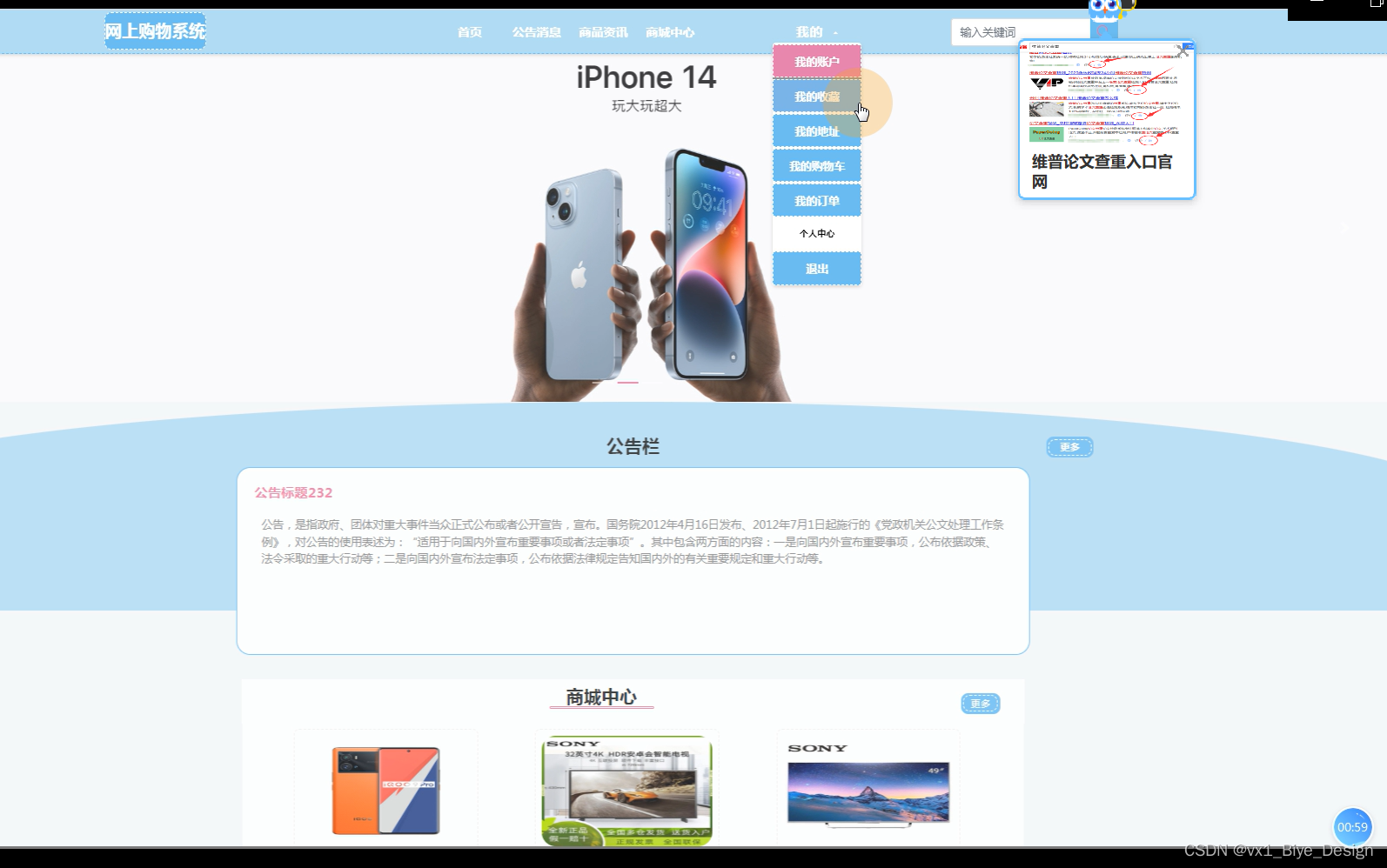 随着社会的发展,计算机的优势和普及使得网上购物系统的开发成为必需。网上购物系统主要是借助计算机,通过对首页、站点管理(轮播图、公告栏)用户管理(管理员、买家、卖家)内容管理(商品资讯、资讯分类)商城管理(商城中心、分类列表、订单列表)等信息进行管理。减少管理员的工作,同时也方便广大用户对商品信息的及时查询以及管理。