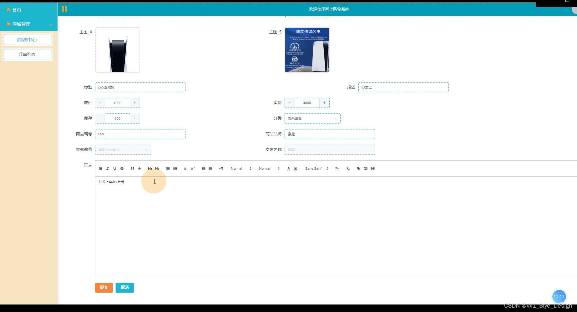 输入数据:商品名称、介绍、图片等内容。