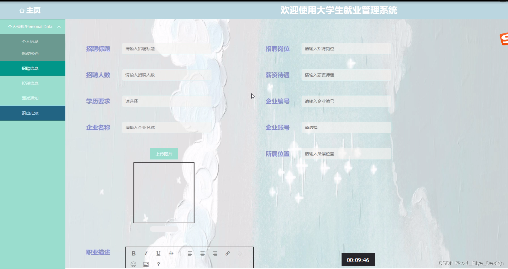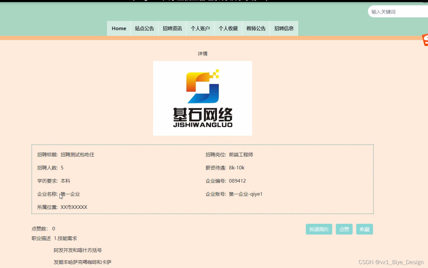 招聘信息管理:对职位信息进行维护,添加、删除、修改信息。