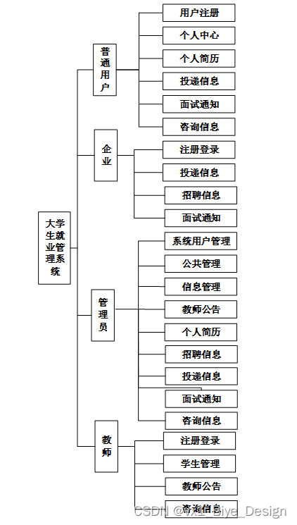 大学生就业管理系统总体分为前台用户模块和后台管理员模块。