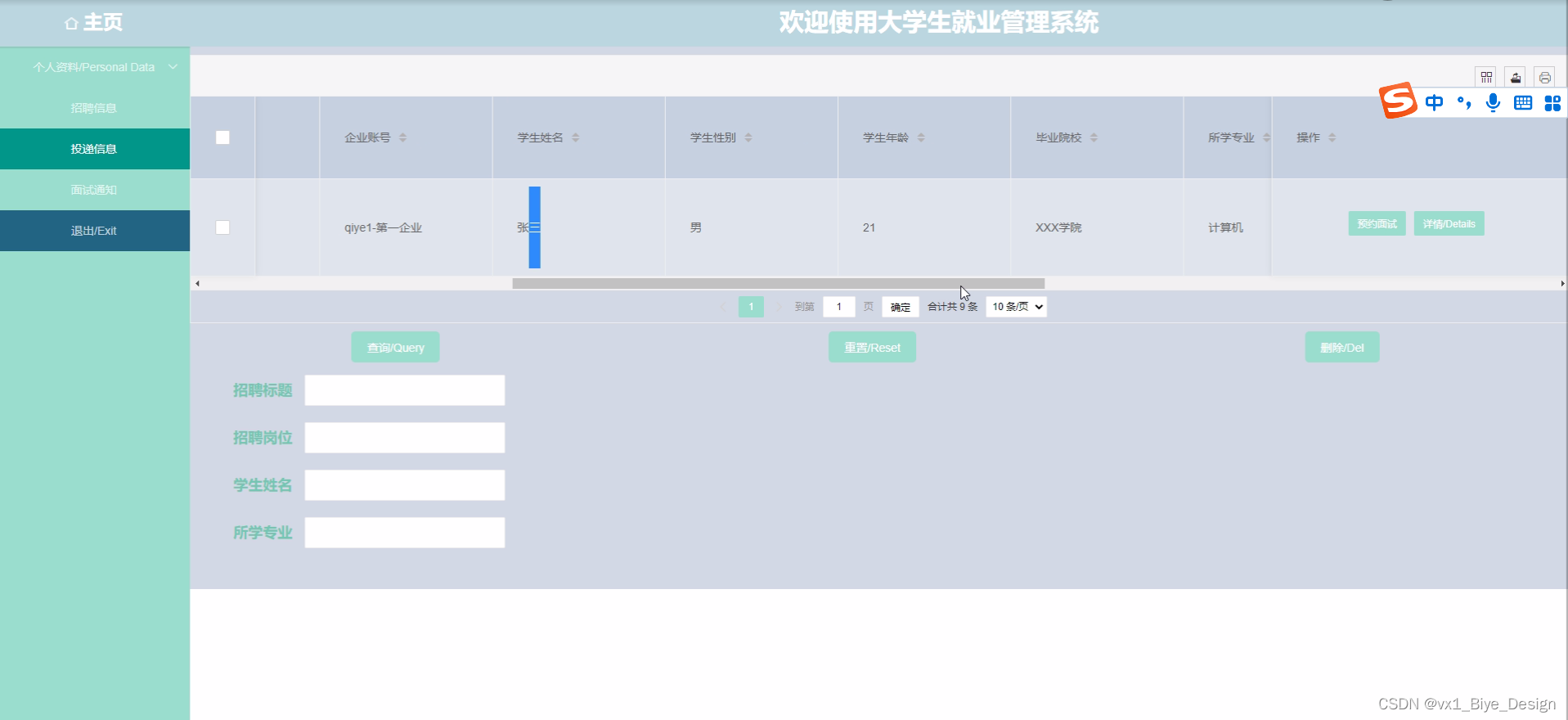 随着计算机互联网技术的迅猛发展,各行各业都已经实现采用计算机相关技术对日益放大的数据进行管理。该课题是大学生就业管理系统为核心展开的,主要是为了实现学生就业信息化管理和用户在线投递简历的需求。