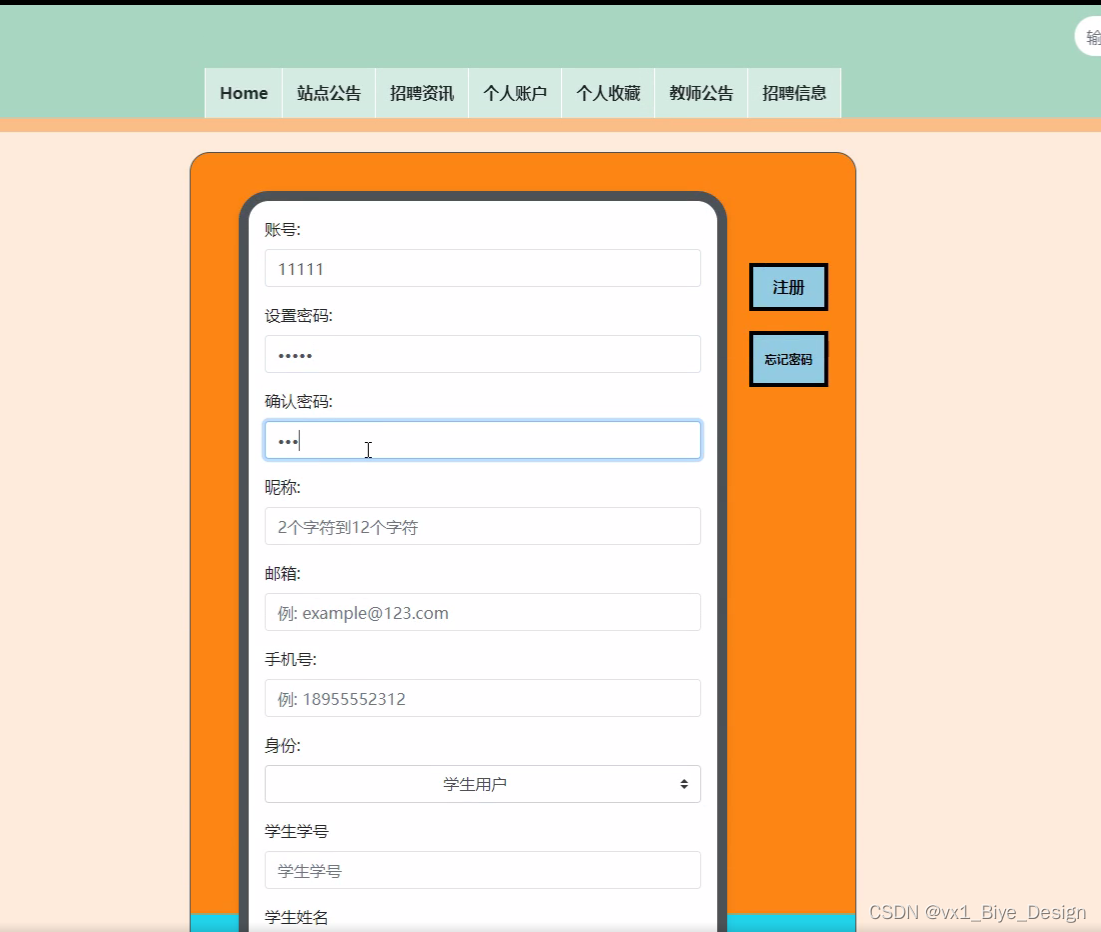 下表是注册功能测试用例,检测了各种数据的输入情况,观察系统的响应情况。得出该功能达到了设计目标。