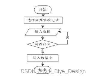 管理员可以对信息等进行的修改,用户也可以对自己权限内的信息进行修改,首先进入修改信息界面,输入修改信息数据,系统进行数据的判断验证,修改信息合法则修改成功,信息更新至数据库,信息不合法则修改失败,重新输入。修改信息流程图如图3-5所示。