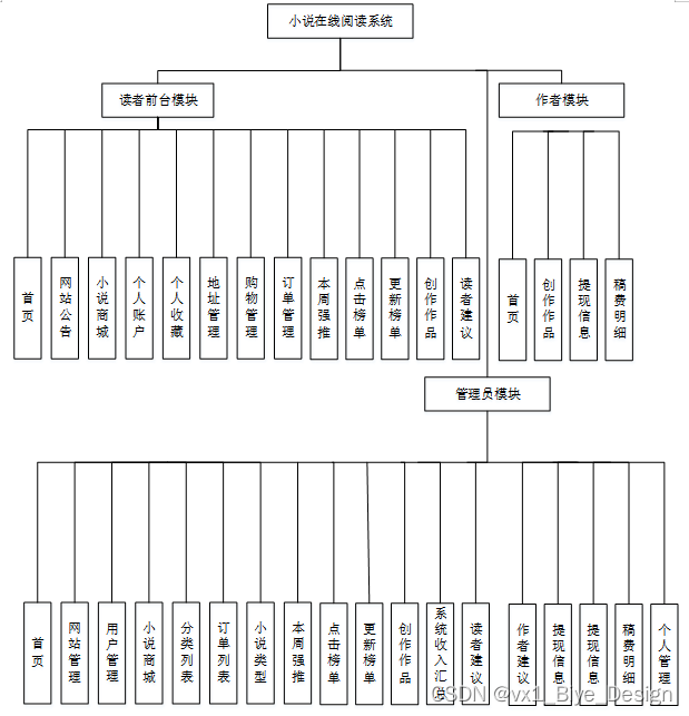 系统架构图属于系统设计阶段,系统架构图只是这个阶段一个产物,系统的总体架构决定了整个系统的模式,是系统的基础。小说在线阅读系统的整体结构设计如图4-2所示。